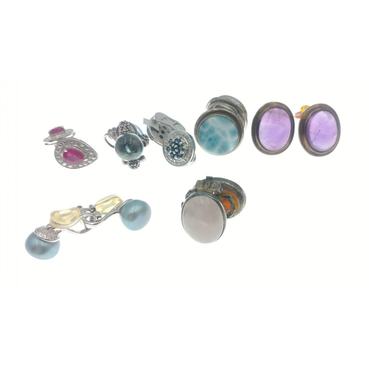 Six sets of silver stamped 925 earrings and one other unmarked pair.