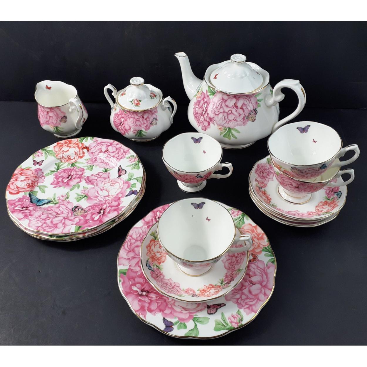 A ROYAL ALBERT Miranda Kerr tea service for four comprising 4 cups, 4 saucers, 4 side plates, 1 milk jug, 1 sugar bowl and 1 teapot. All in as new condition