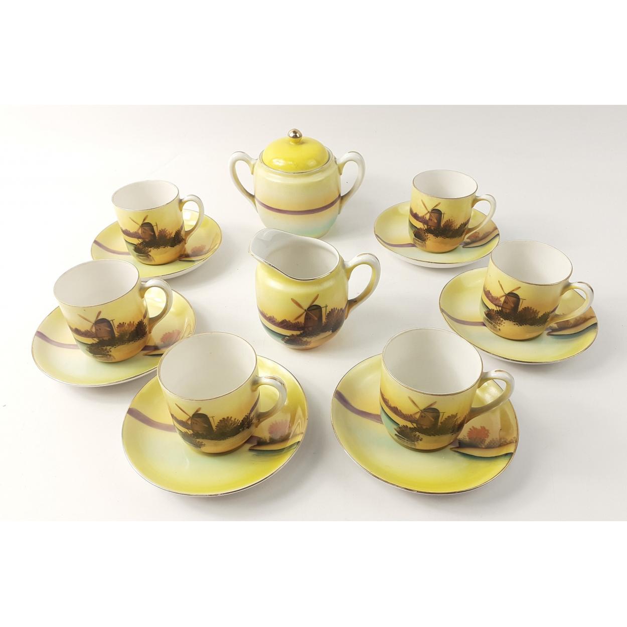 Pretty Meito tea set comprising six cups, six saucers, sugar and cream jug.
