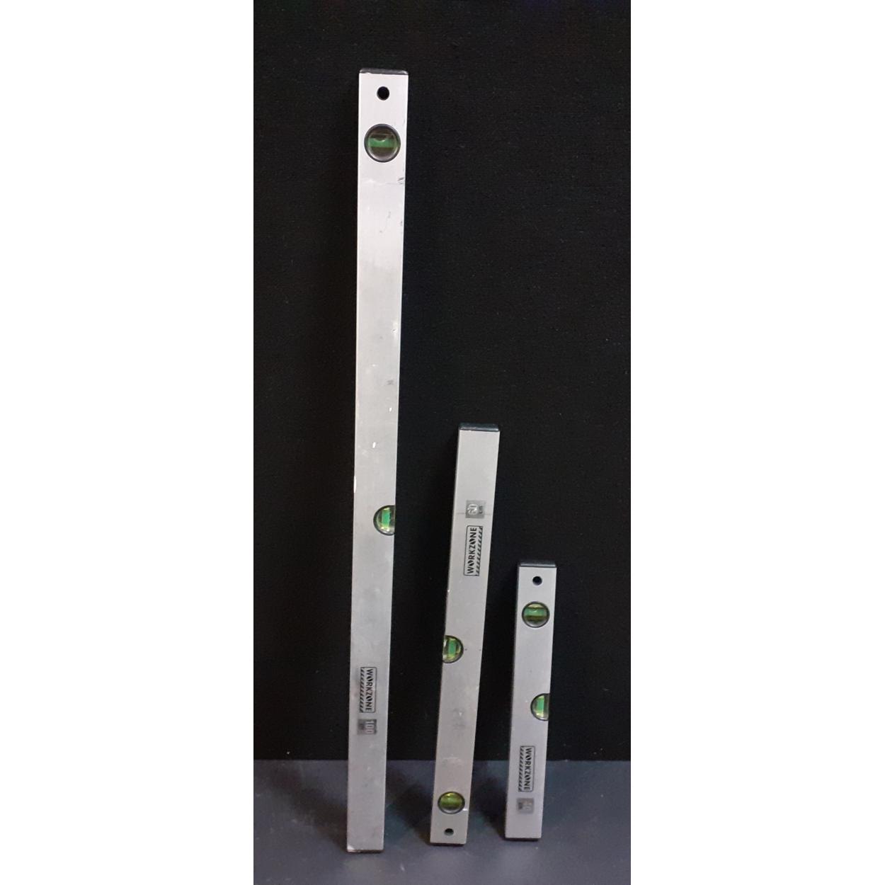EVERYONE NEEDS A BEAD! A set of 3 WORKZONE spirit levels, 100cm, 60cm and 40cm. All in good order