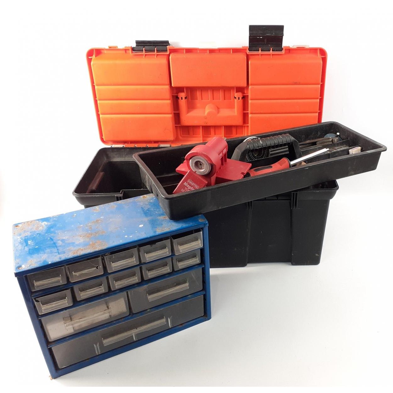 A mixed tool lot to include various tools, fret saws, screws, and lot of those ever-useful bits and bobs