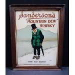 A hard to find SANDERSON'S "MOUNTAIN DEW" WHISKY 'Rare Old Scotch' Robertson, Sanderson & Co Ltd, Leith' advertising picture on glass c1890s. Some damage to the wooden frame which is stamped Sanderson's. Glass is intact frame 60x48cm approx