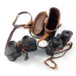 Two pairs of vintage binoculars to include ROSS 7 X 30 STEPANADA in leather case and AKERSHAW & SONS OF LEEDS 1941 dated Binoprism NO. 2 NK2 x 6. All optically clear.