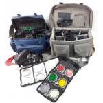 A PENTAX ME F 35mm camera with an SMC Pentax-M 1:1.7 50mm lens with 2 custom camera lens bags with contents to include VIVITAR macro focusing zoom (77362330) 70-210mm, CEN TON MC auto zoom 28-70mm lens, a SIGMA mini-wide 1:2.8 lens, PENTAX 28-20, a SIGMA UC APO 70-210mm lens, SMC PENTAX-A 1:2.8mm, SMC PENTAX-M 1:3.5mm, SIGMA UC zoom 28-70mm, SIGMA zoom 24070mm plus flash units, 2 padded pouches with colour film filters, etc
