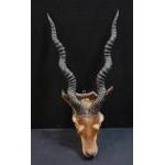 A taxidermy Indian black buck head mounted on a plinth. Horns measure approx 54cm long. Some slight damage to the muzzle.