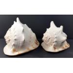 Two beautiful large conch shells 29cm and 25cm. Beautifully patterned and in excellent condition