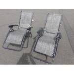 Two black/grey Zero Gravity sun loungers