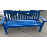 A nice old blue painted CEDAR garden seat seats 3 garden lovers