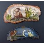 A hand painted mouse and two bluetits on Brazilian Agate - soo pretty - and a hand painted otter down by the river also on Brazilian Agate. Larger 13cm across approx