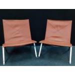 Two CHIC FRITZ HANSEN PK22 armless light tan and stainless steel leather covered chairs - slight wear in areas - a stunning edition to your home! Currently selling for £3500 EACH online. Each carries a Fritz Hansen 1982 lable.