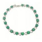 A 925 TGGC tennis bracelet set with green stones interspersed with hearts, 19cm approx