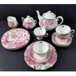 Pretty Meito tea set comprising six cups, six saucers, sugar and cream jug.