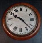 An EDWARDIAN station style ROMAN NUMERAL FACED wall clock with mahogany rim - the glass will require replacing (or not) - a lovely old clock! - dimension 41cm diameter approx