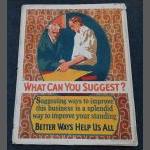 Fantastic original screenprint motivational poster "WHAT CAN YOU SUGGEST?" Copyrighted 1927, MATHER & COMPANY, CHICAGO, ILLINOIS, U.S.A. /TORONTO, CANADA. No artist's signature found. 4ft in height x 3ft width. Condition - a few nibbles on the edges but overall in good condition for the age of the poster!