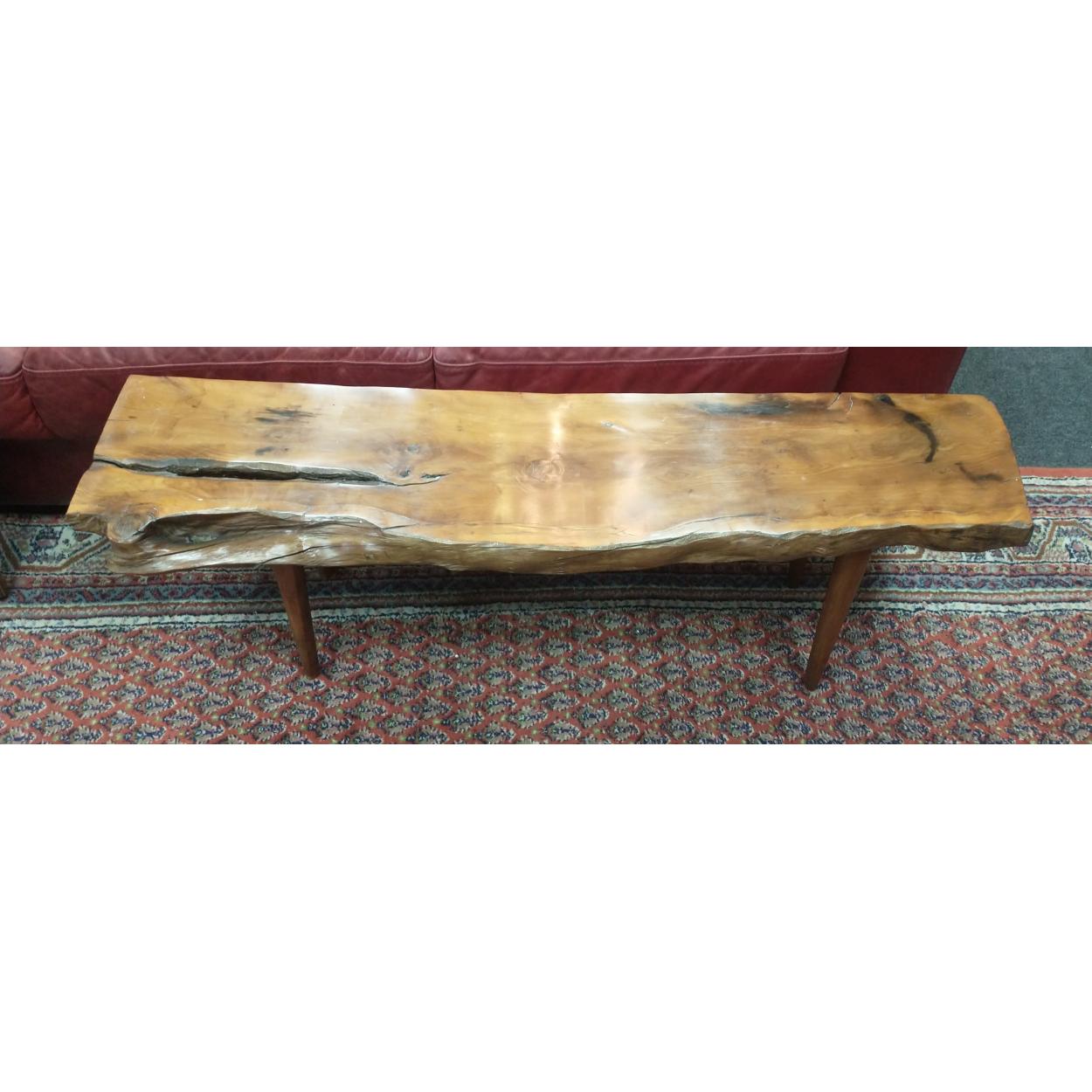 A hand-cut solid piece of ELM RUSTIC bench on 4 tapered leg supports - 56cm x 28cm approx