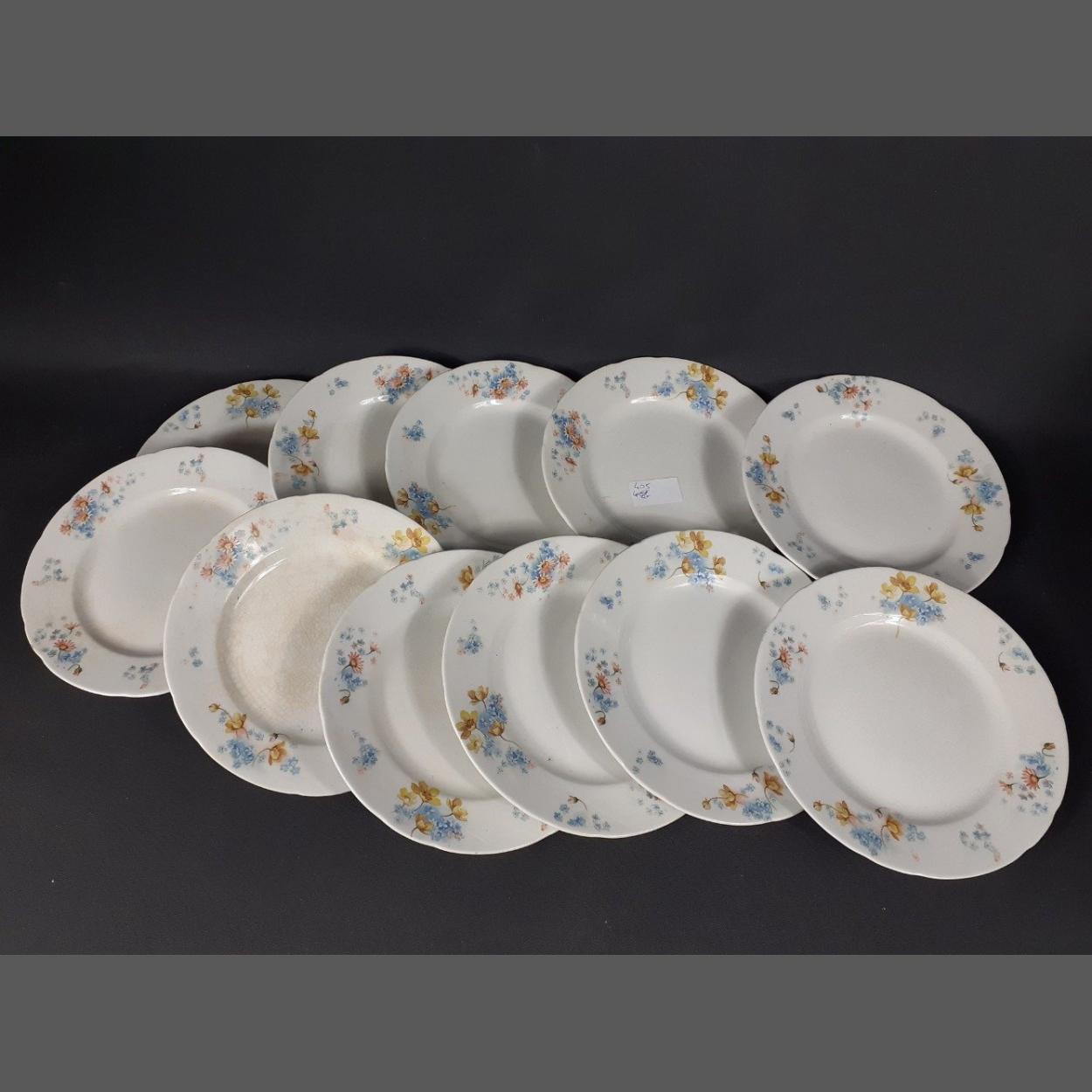 A collection of floral porcelain including a sauceboat 8cm long at top and 8.6cm long at foot. as well as some large plates 24.4cm long. All in good condition. Sauceboat has a couple of cracks.