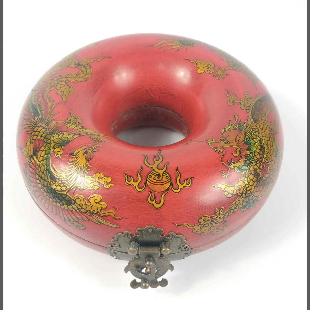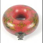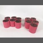 Eleven red wooden storage canisters 9cm tall, 8cm dia