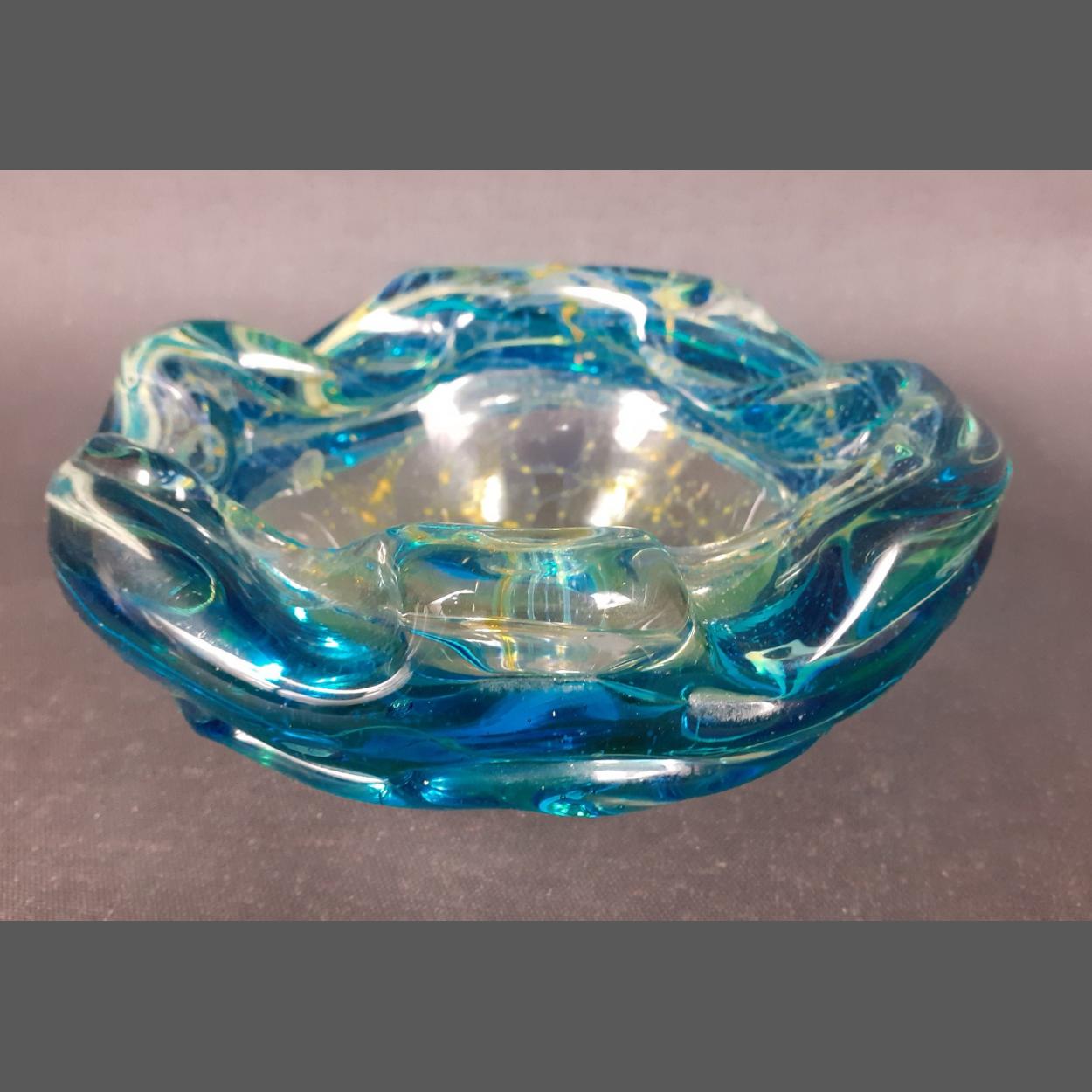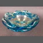 MDINA GLASS bowl or bon bon dish with green swirl decoration , signed Mdina to the base , measures approx 16cm diam and stands 7cm tall
