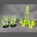 Vintage URANIUM glass to include a small decanter (21cm tall approx), 4 shot glasses and 4 sundae dishes