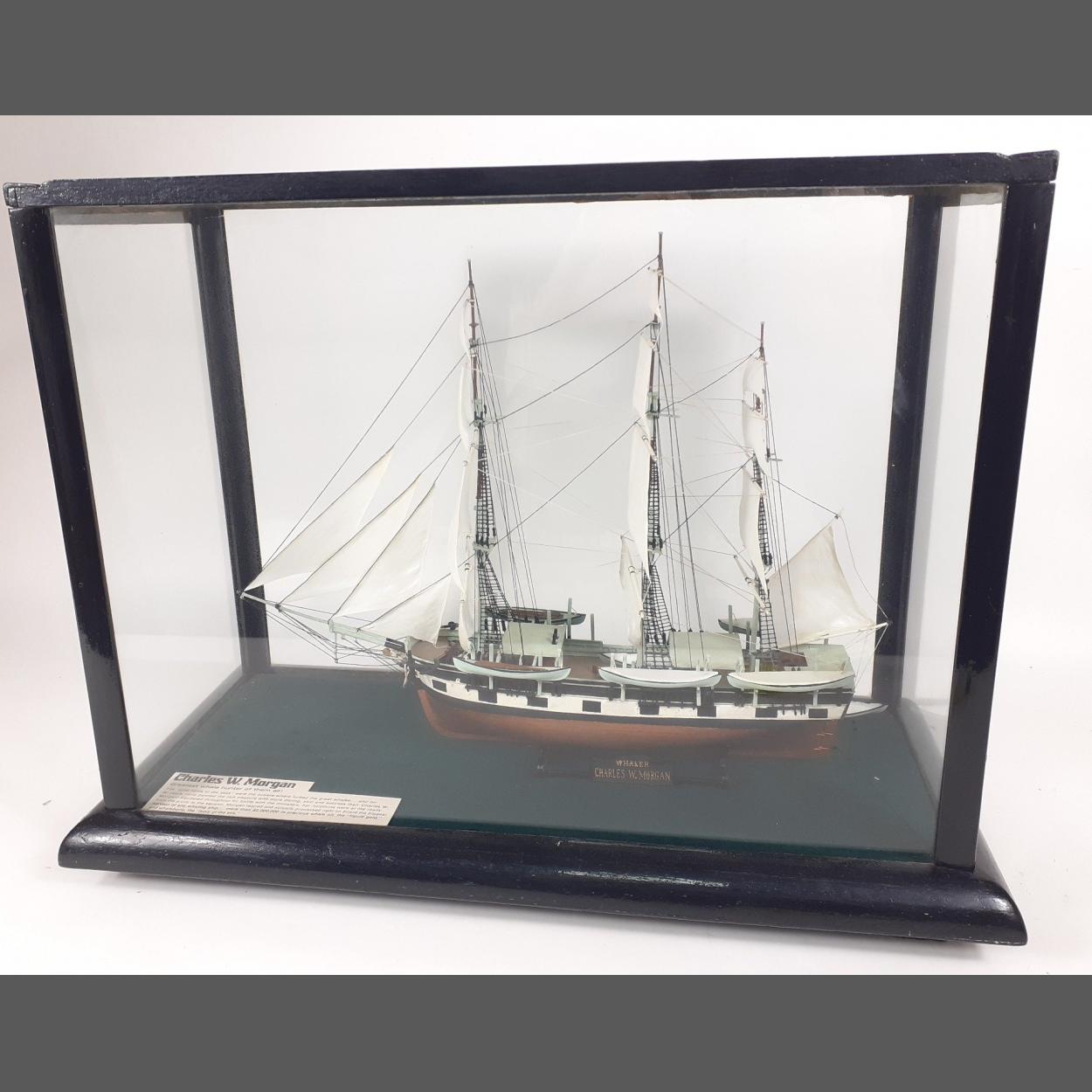 Large cased model ship of CHARLES W MORGAN whaling ship, a superbly detailed impressive modern model in a smart glass display case. Case dimension 38x47x20 approx