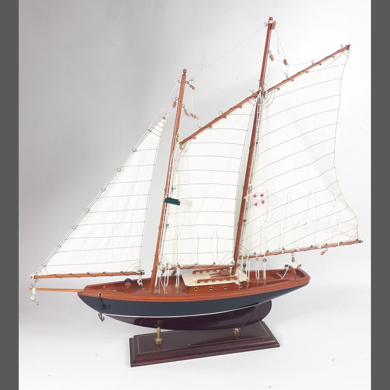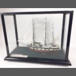 Impressive model of a three masted Schooner. Modern construction in good condition and displays beautifully. 75cm wide x 70cm tall approx
