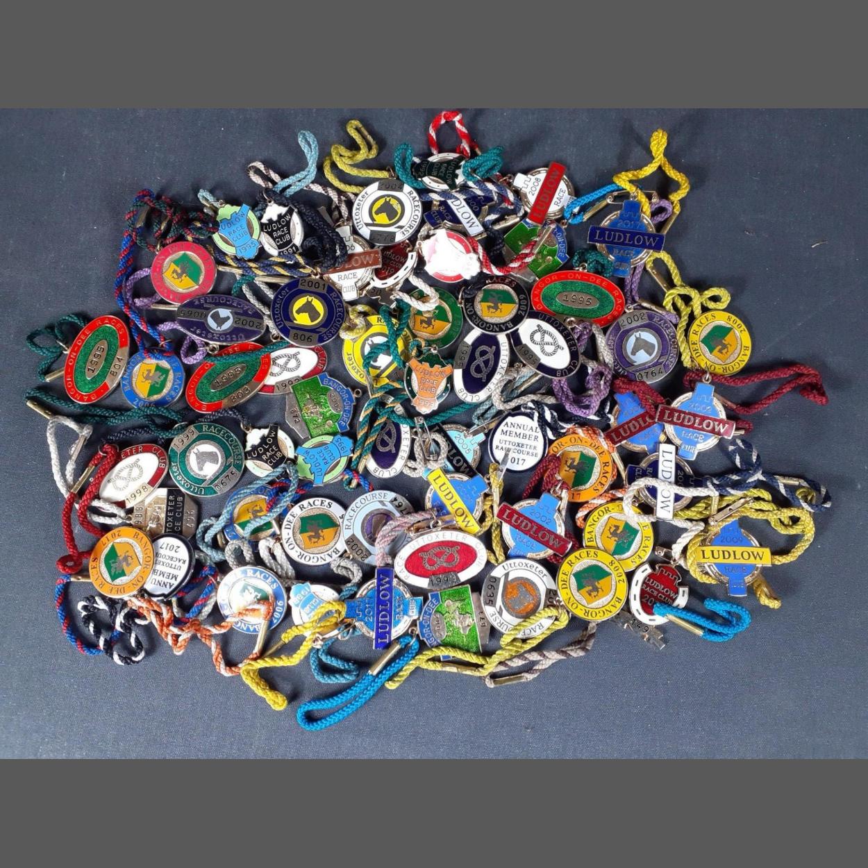 Impressive collection of 57 HORSE RACING, RACE COURSE enamel members badge passes in excellent condition. To include Uttoxeter, Bangor-on-Dee, Ludlow. All in excellent condition