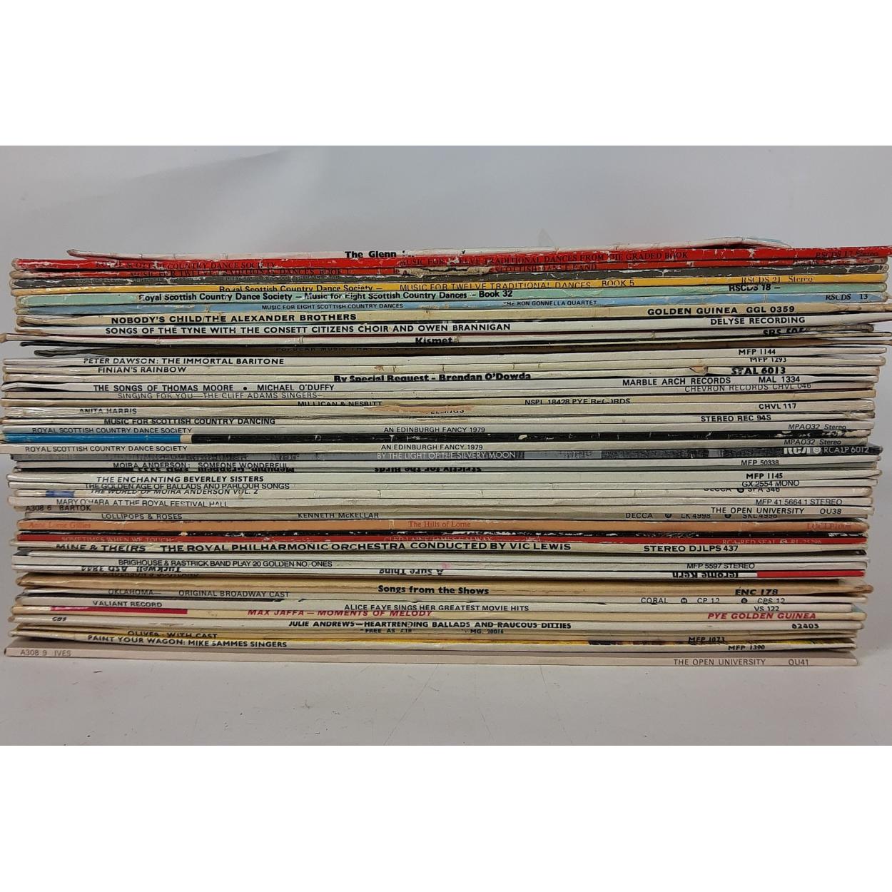 A collection of vintage LPs including many for SCOTTISH COUNTRY DANCING - including six volumes of Music for 12 Traditional Dances, albums by MOIRA ANDERSON, KENNETH McKELLAR, MARY O'HARA, THE BEVERLEY SISTERS, THE BRIGHOUSE & RASTRICK BAND (20 Golden No. Ones), Feelings by ANITA HARRIS, and music from the musicals - OKLAHOMA, PAINT YOUR WAGON (The Mike Sammes Singers), OLIVER!, KISMET and THE GLENN MILLER BAND