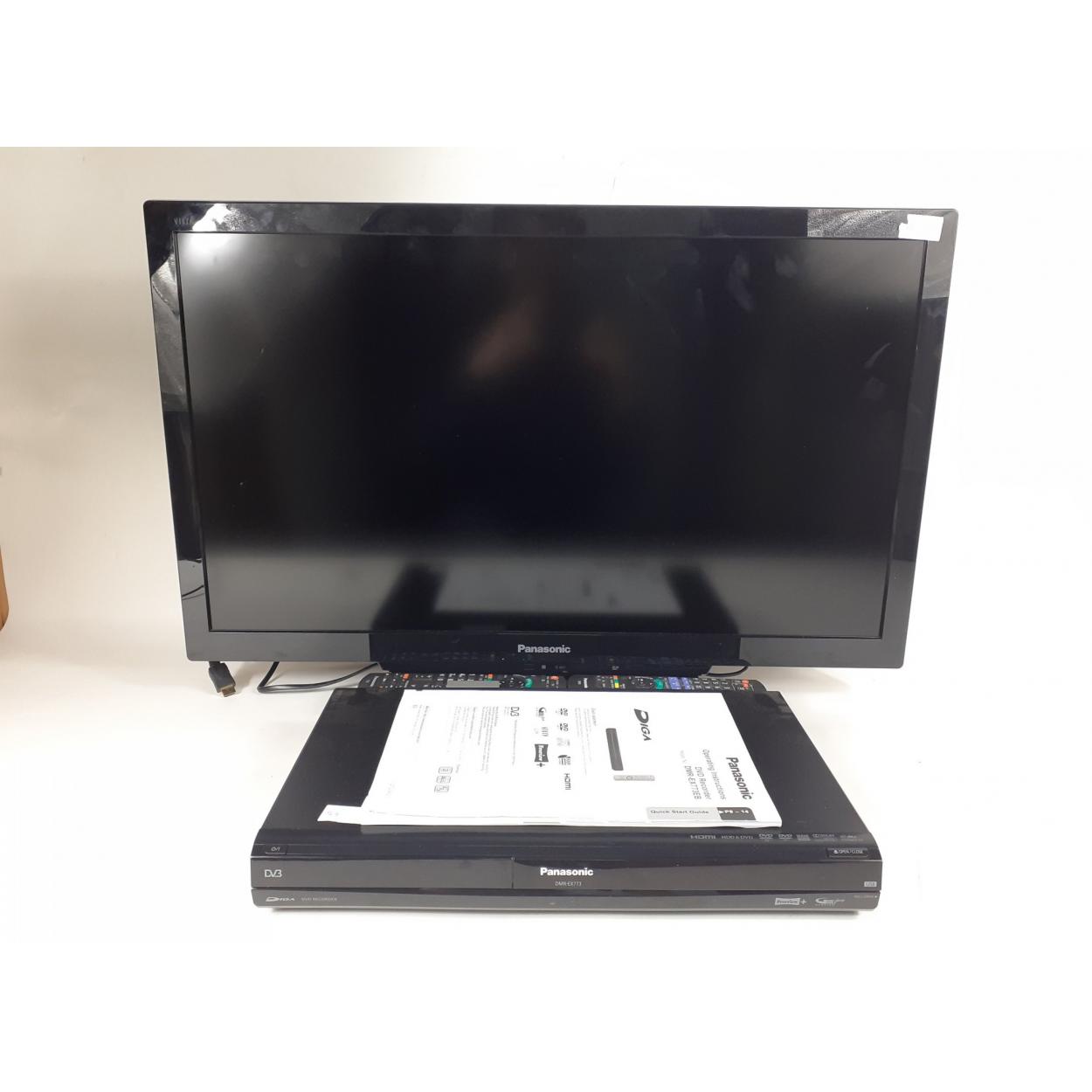 A PANASONIC 32" screen TV plus a PANASONIC DMR-EX773 DVD recorder and Freeview receiver, both with remote controls