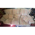 SUPER QUALITY- A striped STYLISH PARKER KNOLL 3 seater couch WITH BRASS WHEELS