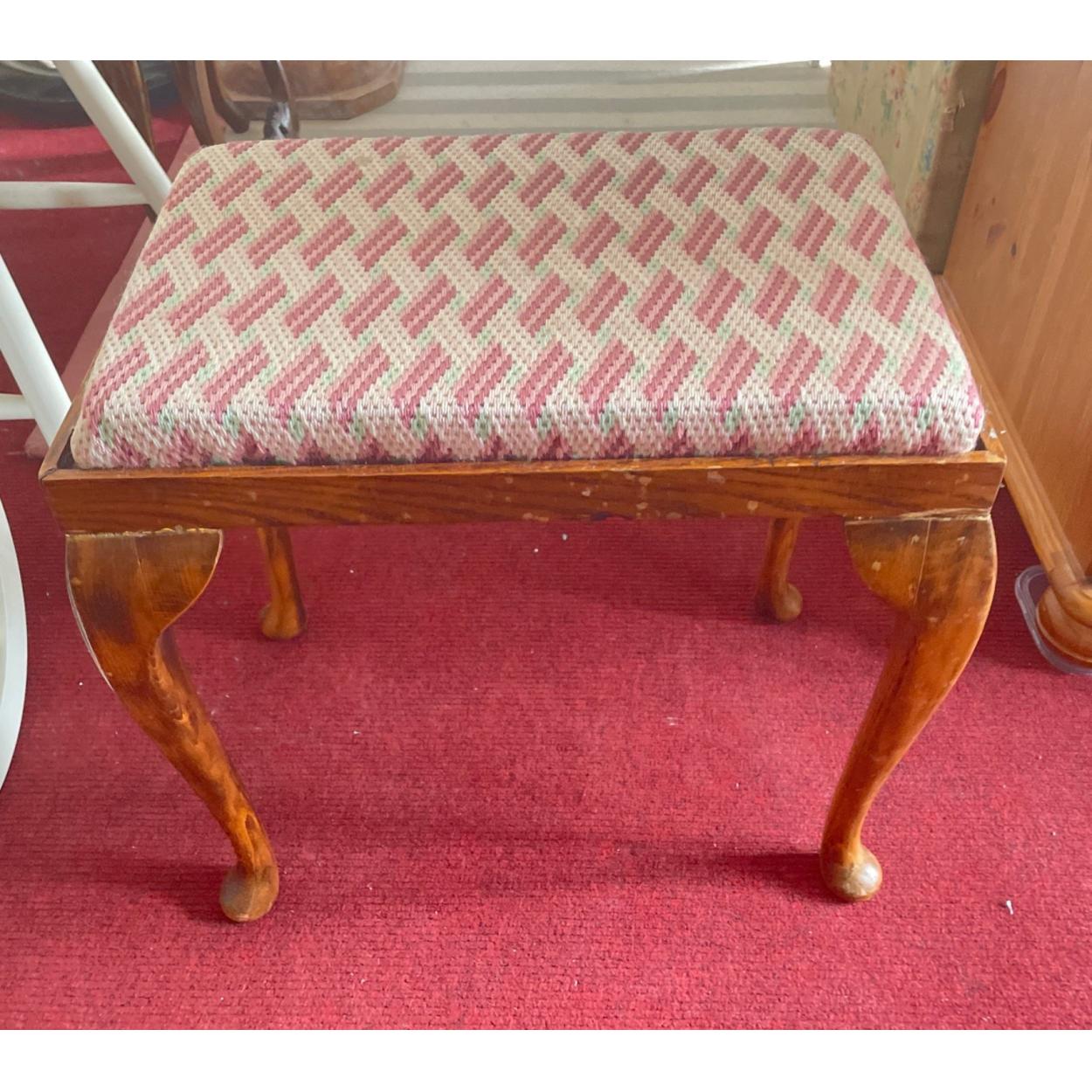 A VINTAGE stool with tapestry long-stitch(really nice handiwork) 43cm high x 43cm long x depth 28cm approx