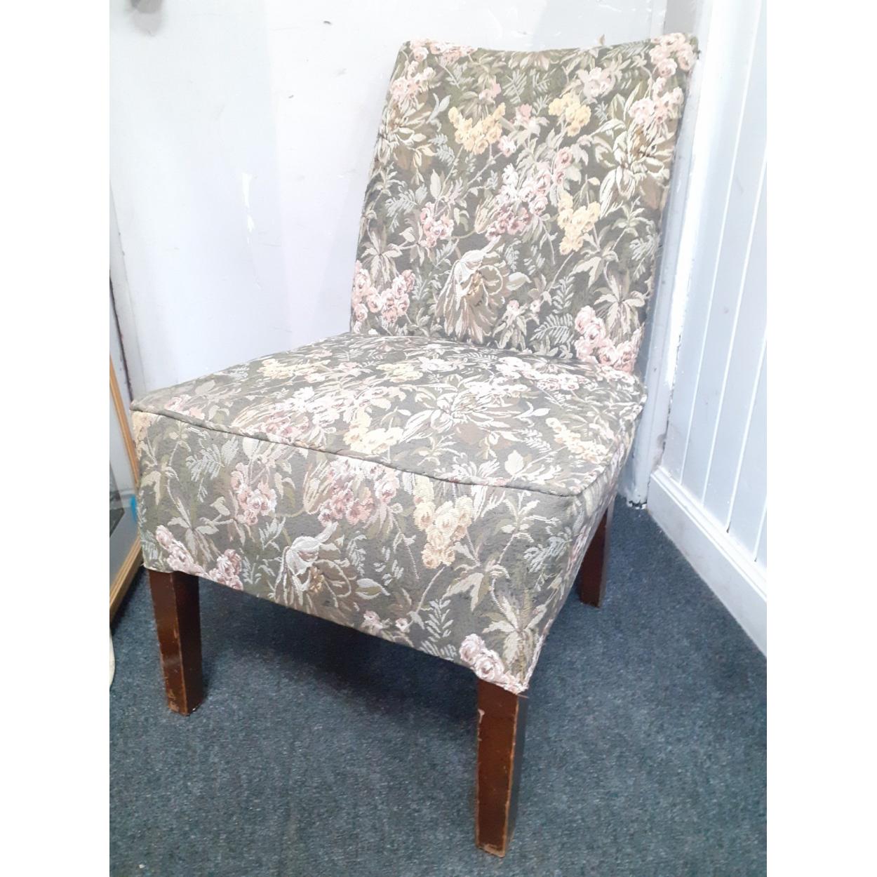 A fabulous occasional chair with gilt floral decoration on the centre piece of the chair. Dimensions wide approx. Condition - good condition.