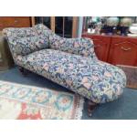 A BEAUTIFUL EDWARDIAN Chaise Longuere-covered in a striking fabric with separate bolster cushion complete with its ceramic castors - dimensions 5ft long x 2ft wide approx