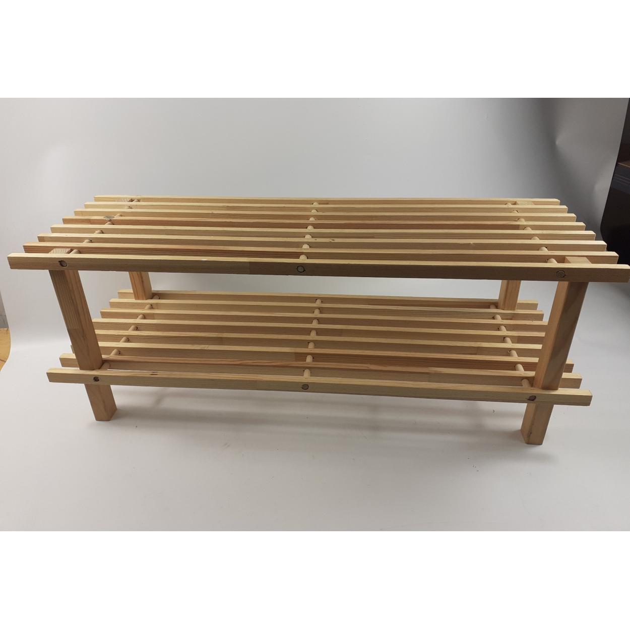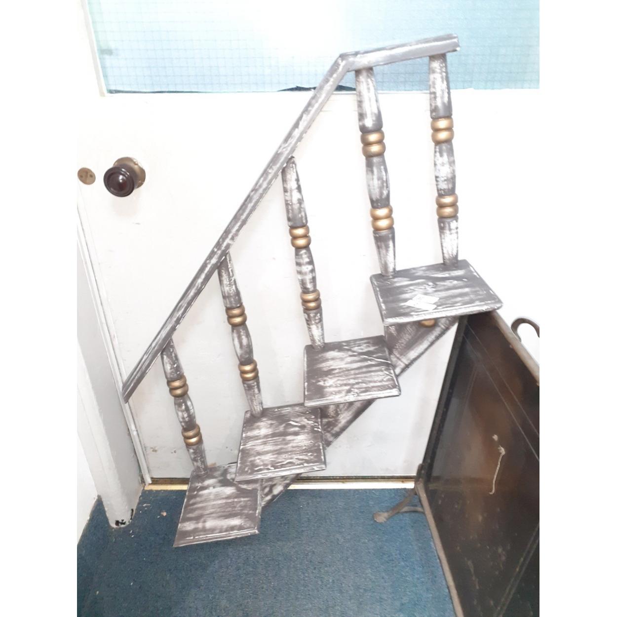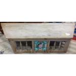 A painted stepped display unit with a 4 hook coat rack 90cm high x 70cm wide