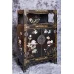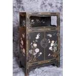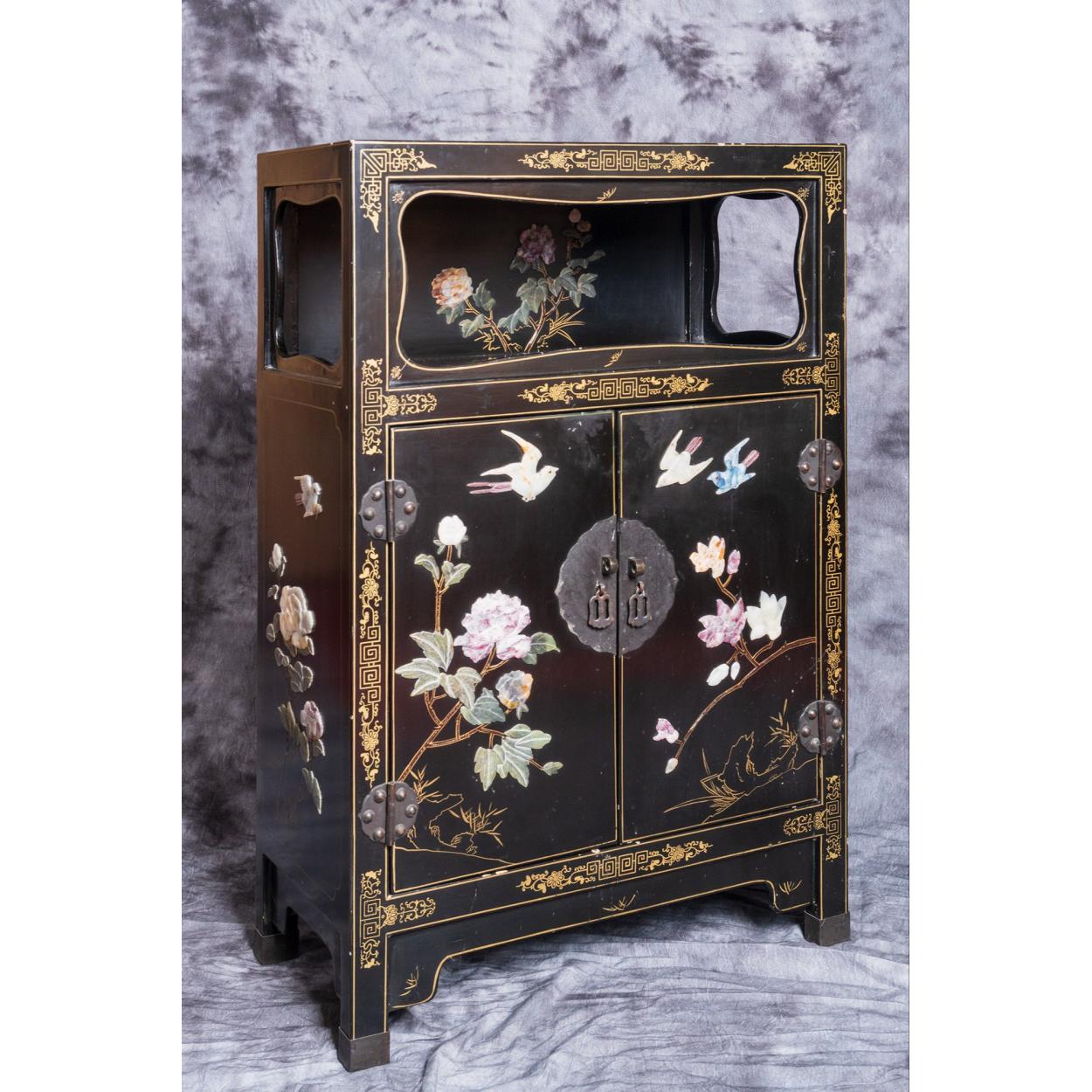 CHINOISERIE cabinet with carved soapstone with wild birds on black lacquer with gilt hand painted decoration - 92cm x 61cm x 30cm Approx