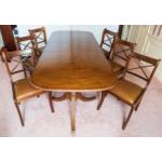 HANDMADE - Richardson handmade bespoke Honduras Flamed Mahogany dining extending section and comes with protective cover pads table with six leather clad Regency cross back with brass inlay(matching 106-110) - 180cm x 90 cm approx without extensions