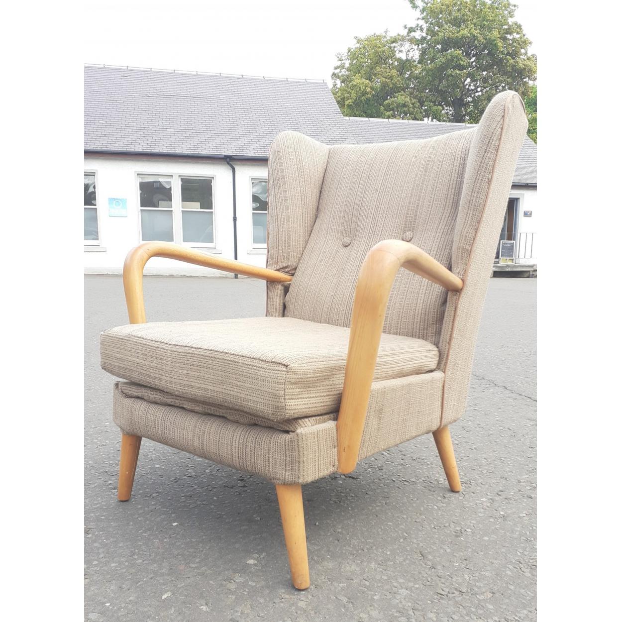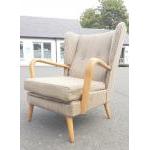 RETRO STYLISH armchair with lugs, beech wooden arms and legs - really comfy! -66cm wide x 90cm height x 64cm depth approx