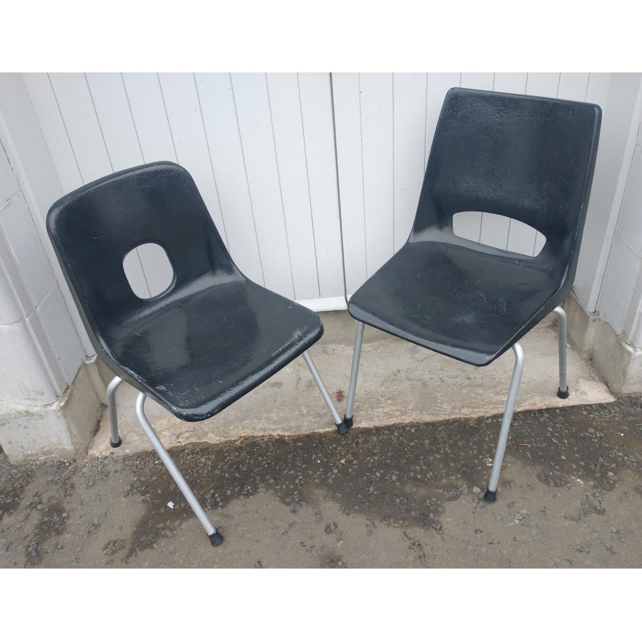Two stackable plastic chairs in good usable condition. Each stands 72cm approx.