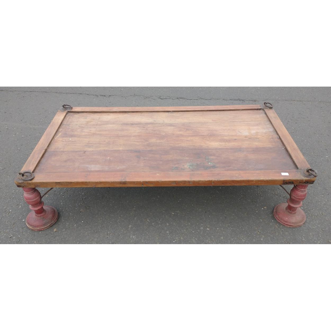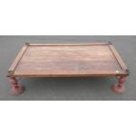 An wooden Indian day bed with large round wooden feet 165x90x35 approx