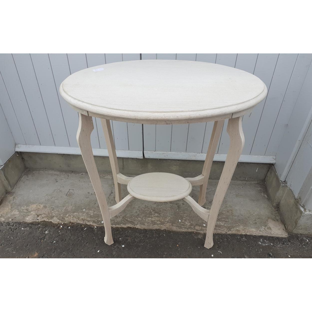 An modern OVAL shaped occasional table with parcel shelf - dimensions 75cm height x 67cm length x 43cm depth