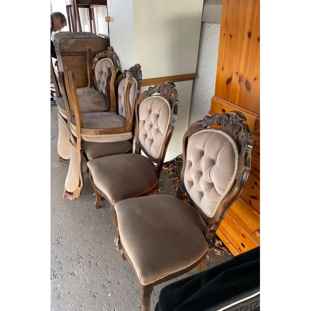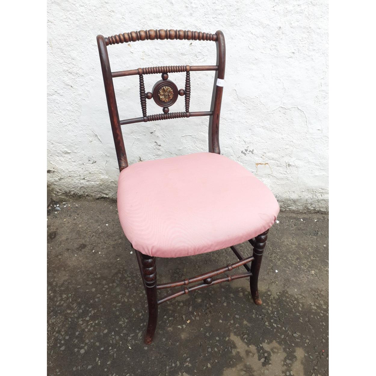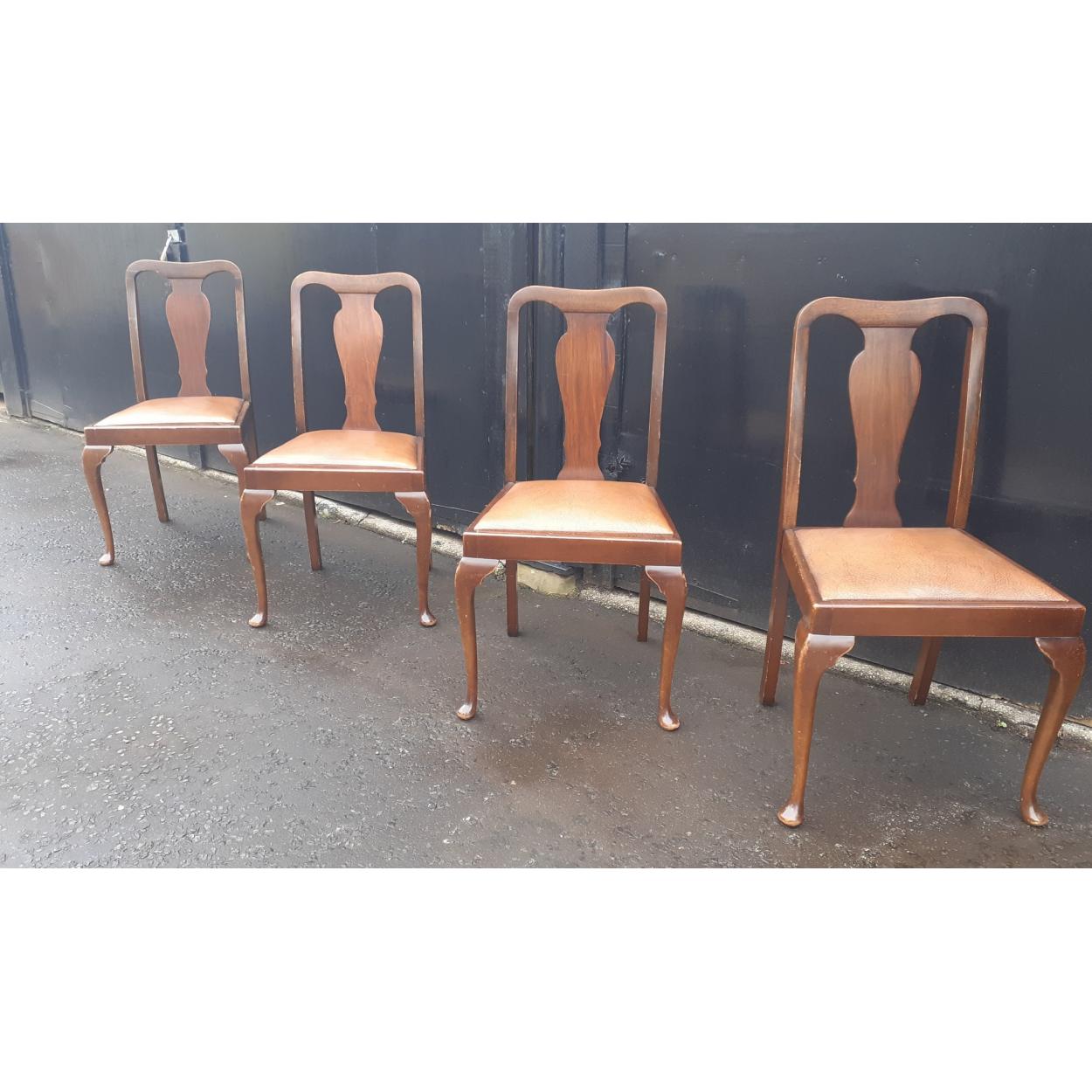 A SET of 4 dining table chairs complete with leather seat pads, c1950s. Dimensions - 90cm high, width 46cm x depth 38cm
