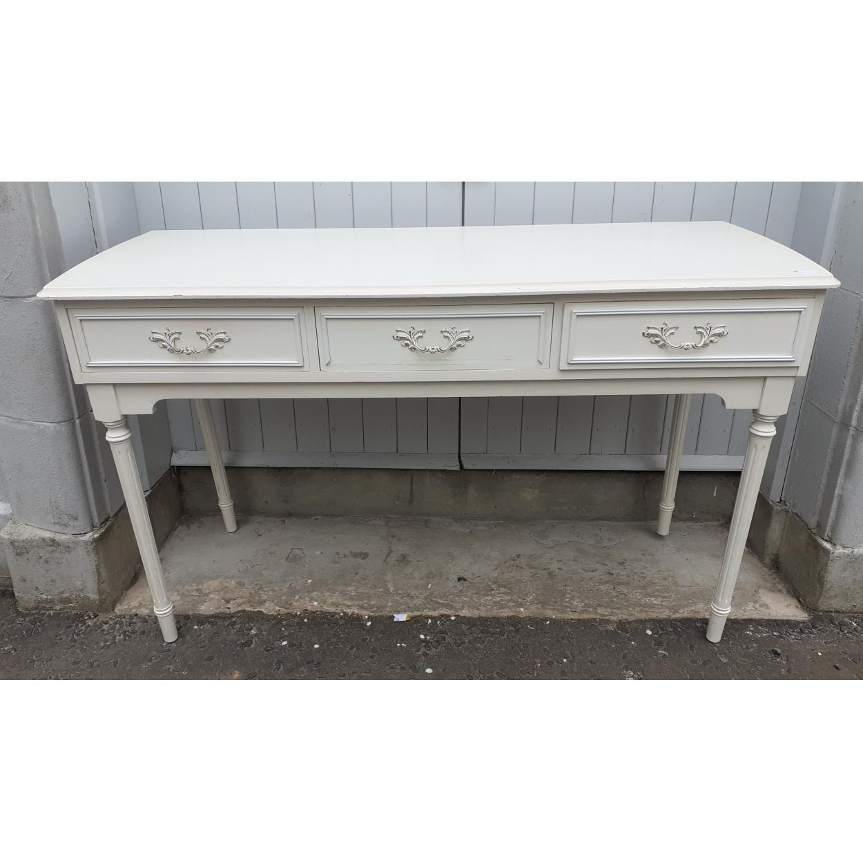 A FABULOUS quality console table in a LUXURIOUS cream colour. - dimensions width 86m x depth 41cm x height 72cm appox. Good condition