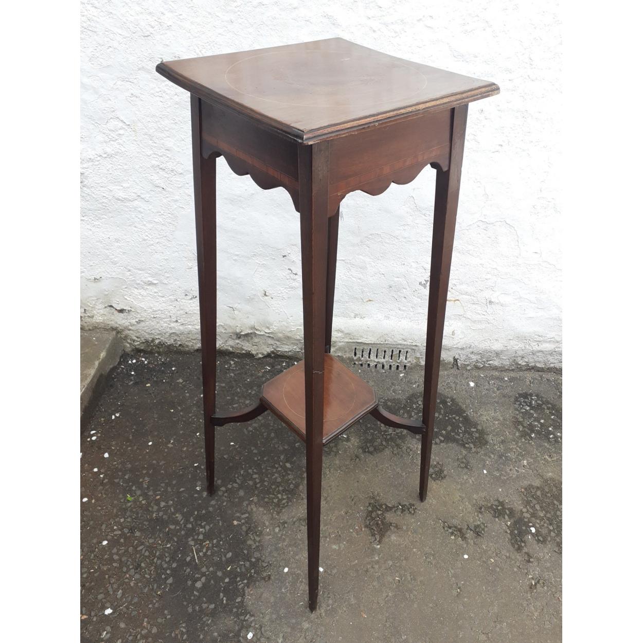 AN EDWARDIAN tall plant table with lower shelf - 50cm square top x height 106cm approx