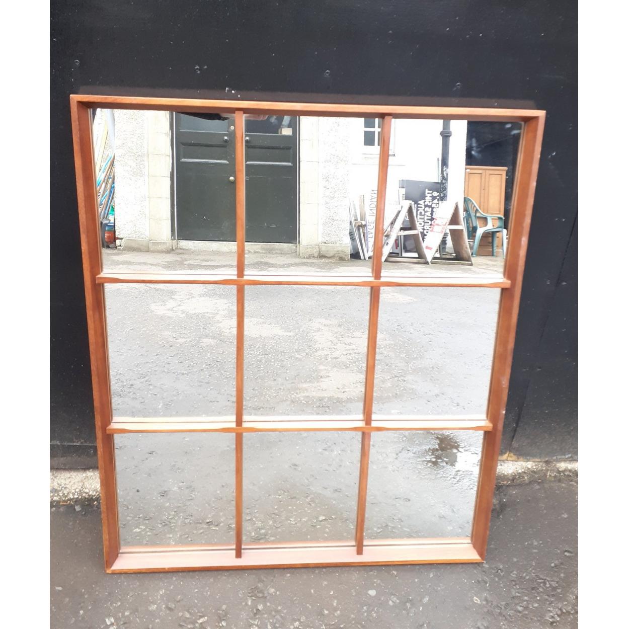 A STYLISH wooden wall mirror C1950s. Dimensions - 94cm tall x 78cm wide. Good condition.