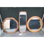 Three STYLISH RETRO wooden mirrors to include an octagonal 58cm, a rectangle 78cm x 28 and one of circle shape 62cm.