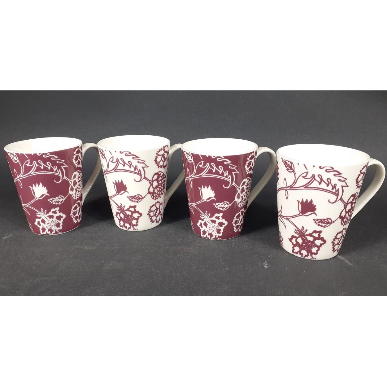 Four RAYWARE fine porcelain mugs with floral print pattern. 10cm high approx, no visible damage