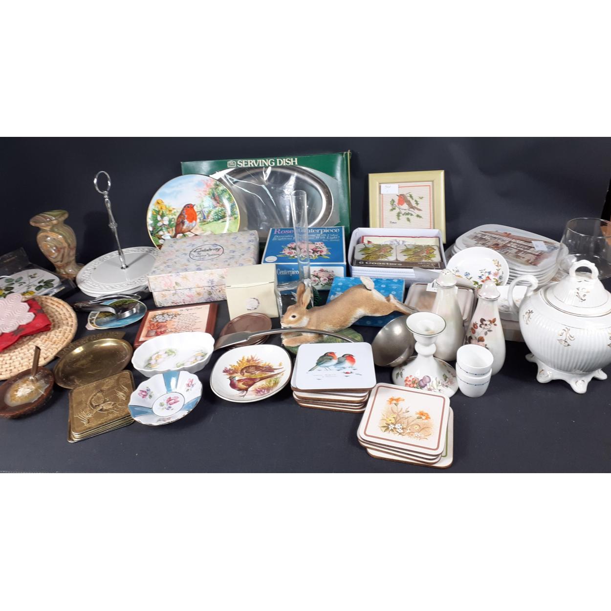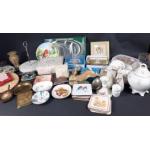 Box of KITCHENALIA. Many items to include coasters, flatware, trinkets and ornaments