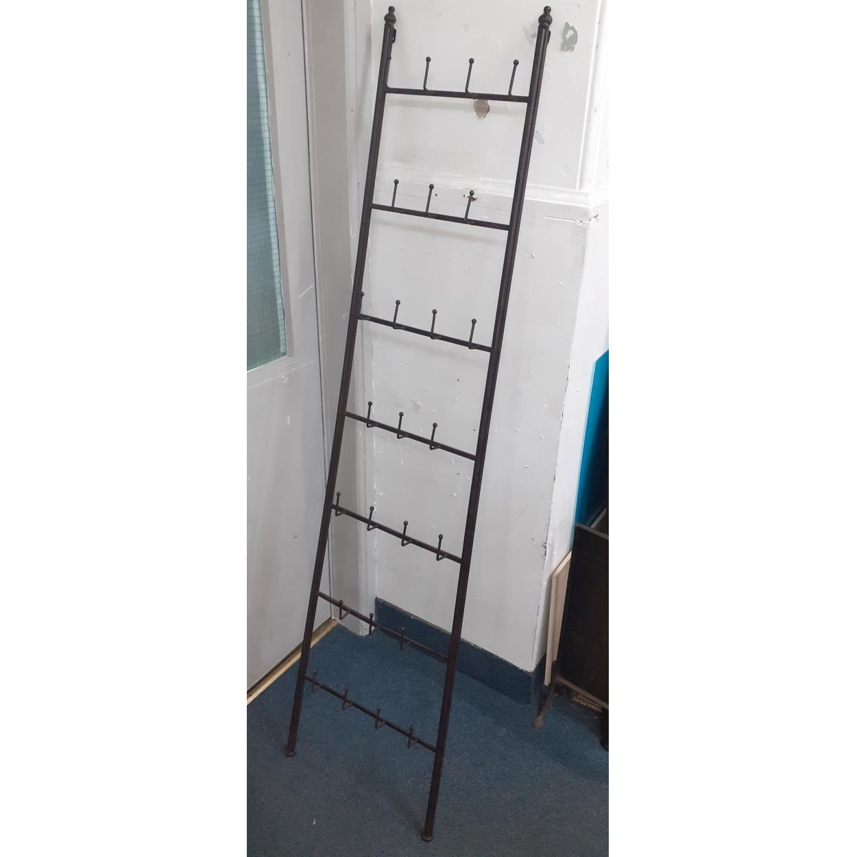 A distressed metal display rack with 28 hooks - dimensions170x39cm approx