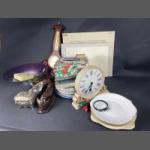 A mixed domestic lot to include an unusual ceramic table lamp looking as though made of pebbles (36cm tall approx), two decorative wall plaques by SPODE (Indian tree) and AYNSLEY (each 27cm dia approx), plus a lustre vase by ROYAL BRADWELL etc
