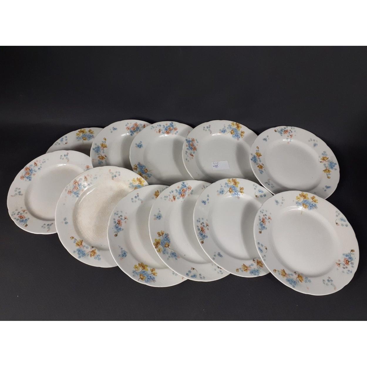 A collection of floral porcelain including a sauceboat 8cm long at top and 8.6cm long at foot. as well as some large plates 24.4cm long. All in good condition. Sauceboat has a couple of cracks.