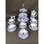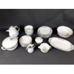 Vintage to include 6 bowls (13cm), 6 plates (17cm), 6 plates (23cm), 1 sauceboat with underplate, 1 serving bowl (23cm dia), 1 ashet (32cm approx), 1 milk jug, 1 lidded sugar bowl, 1 teapot, 1 lidded tureen ( 18cm dia),